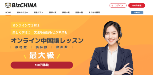 BizChina(ビズチャイナ)は、オンライン学習に特化した中国語スクール。学習目的に応じて「総合コース」「会話コース」の2種類が用意されており、総合コースは、講師の多くが日本語で説明可能。文法・会話・ビジネス中国語・HSK対策まで幅広く対応しており、中国語初心者や、体系的に学びたい方に向いています。